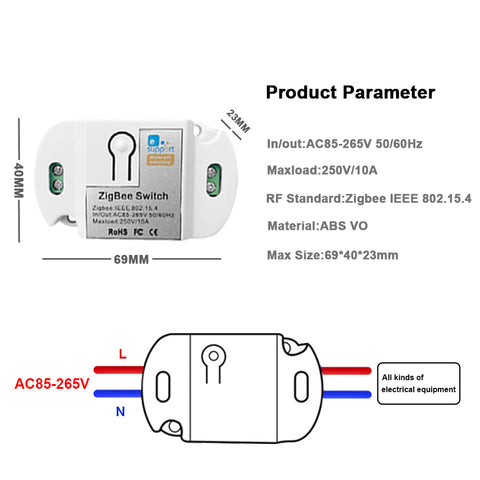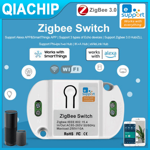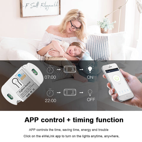 QIACHIP KR2201WZ-Y eWelink ZigBee Smart Switch Module 10A Remote Controller Smart Home Voice Control Works With Smart Things Google home Assistant Amazon Echo Alexa App