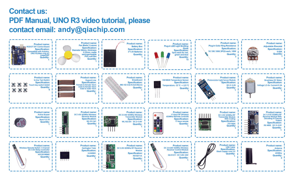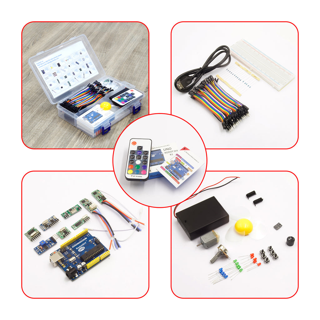 Arduino Development Board, RF 433MHz Wireless Transmitter Module, Receiver Module, Motor, Temperature and Humidity Sensor, Infrared Sensor Module Beginner Wireless Remote Control DIY Kit, Compatible with ARDUINO UNO R3