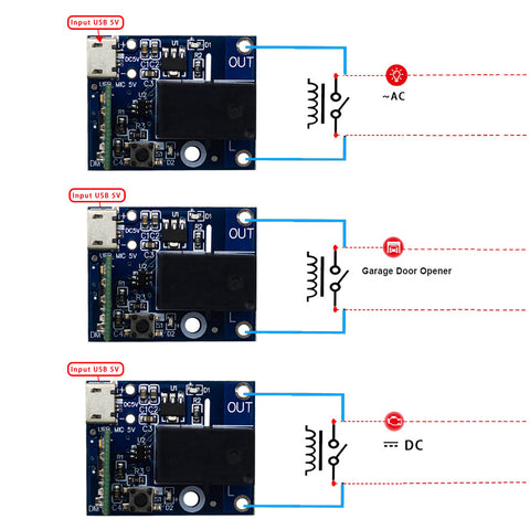 When the module is switched to self-locking mode, users can turn on/off the connected appliance instantly. When the module is switched to inching mode, users can press on/off toggle button to turn on or off connected device.